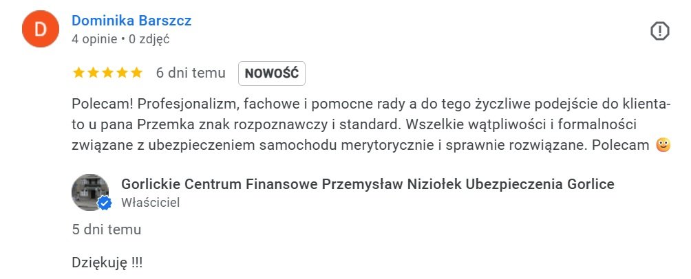 Szukasz pewnych ubezpieczeń w Gorlicach? Wybierz Przemysław Niziołek Ubezpieczenia Gorlice – doradztwo ubezpieczeniowe dopasowane do Twoich potrzeb. Oferuję ubezpieczenia komunikacyjne, majątkowe, na życie, zdrowotne i firmowe. Pomagam klientom indywidualnym i przedsiębiorcom w wyborze najlepszej oferty spośród wielu towarzystw. Gwarantuję rzetelność, szybką obsługę i jasne zasady. W branży działam od 10 lat, co przekłada się na znajomość każdej polisy i gwarancję najlepszego wyboru dla Ciebie. Wybierz najlepsze ubezpieczenia w Gorlicach z lokalnym ekspertem